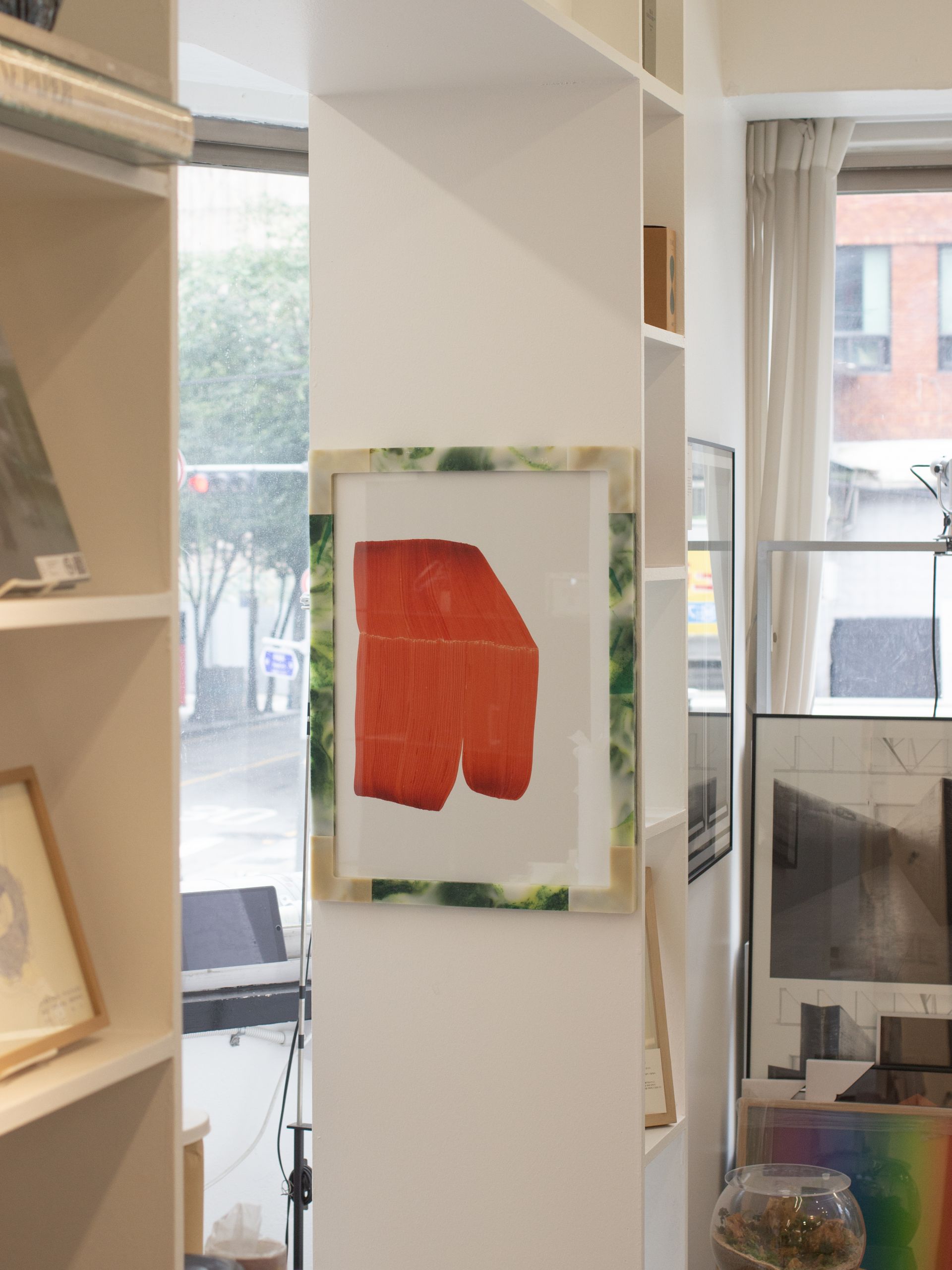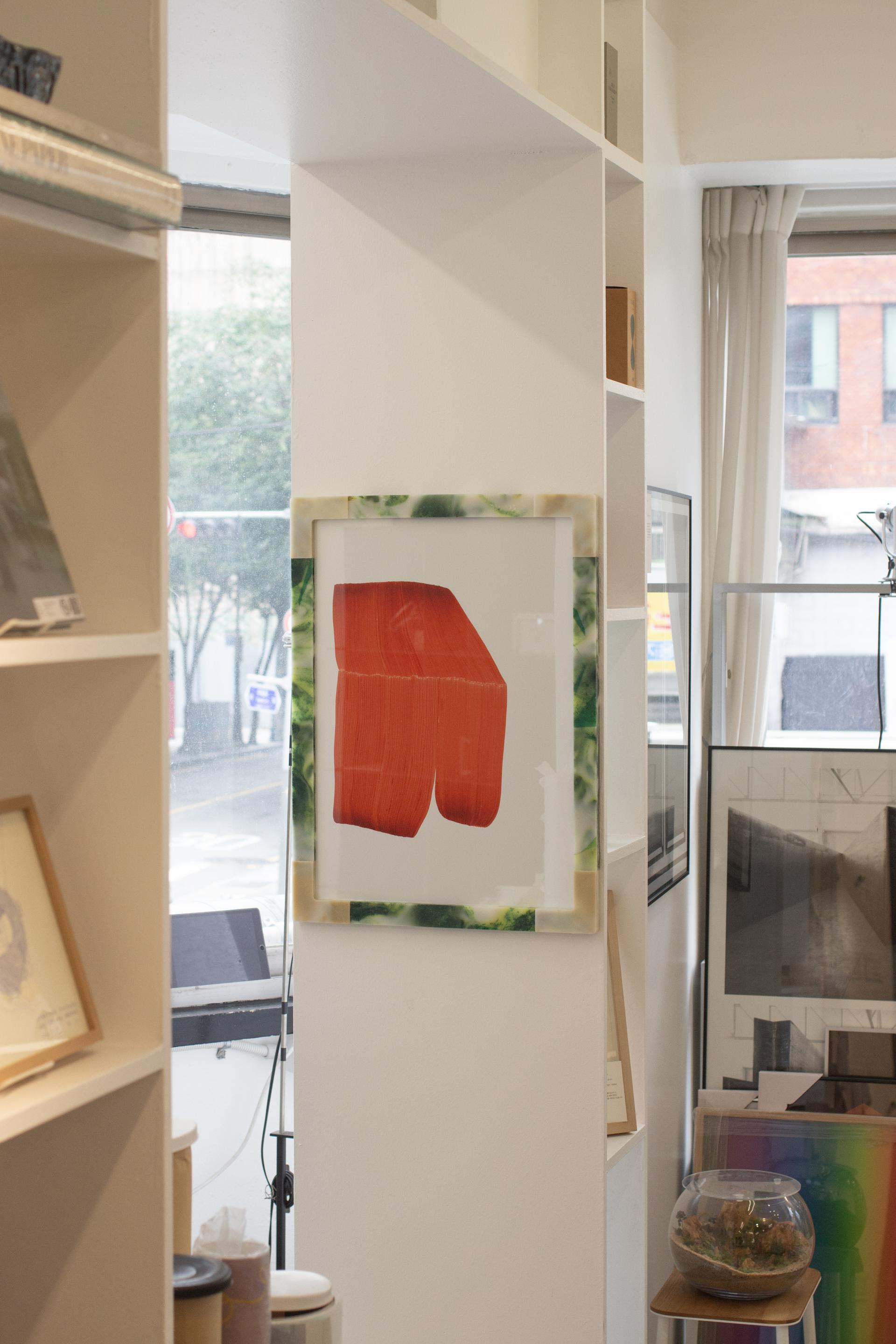 버려졌던 플라스틱이 녹아 만든 액자와 선반장은, 인공과 자연 사이의 경계를 흐리며 우리에게 익숙하면서도 낯선 감각을 선사합니다.
