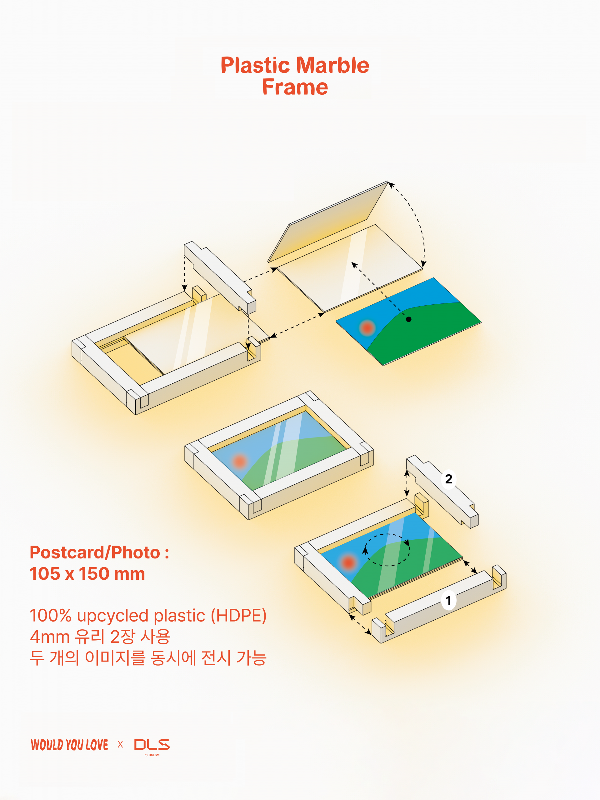 버려졌던 플라스틱이 녹아 만든 액자와 선반장은, 인공과 자연 사이의 경계를 흐리며 우리에게 익숙하면서도 낯선 감각을 선사합니다.